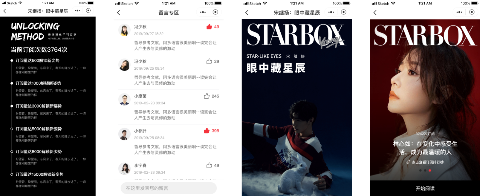 《STARBOX電子雜志》是一款微信小程序,《STARBOX》電子刊是本聚焦年輕偶像以及獨(dú)特個(gè)性的意見領(lǐng)袖,分享他們生活方式的潮流特刊。 讀者通過微信小程序可直接挑選所喜歡的雜志,購(gòu)買相應(yīng)閱讀碼,通過輸入閱讀碼閱讀雜志。同時(shí)用戶可以預(yù)覽雜志,可以查看已購(gòu)買的雜志和閱讀碼。 雜志內(nèi)容包括圖文詳情、視頻、人氣排行等等。