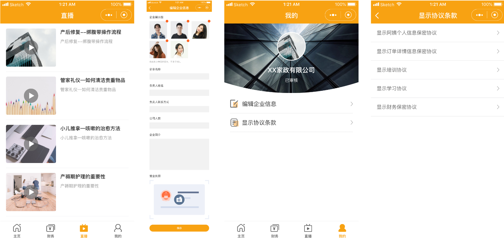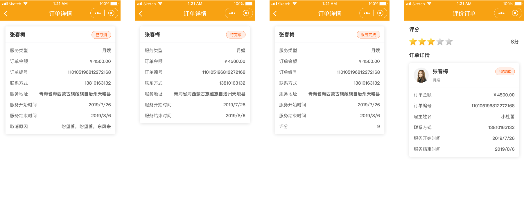 4、阿姨端-我的訂單收入、培訓(xùn)信息展示: