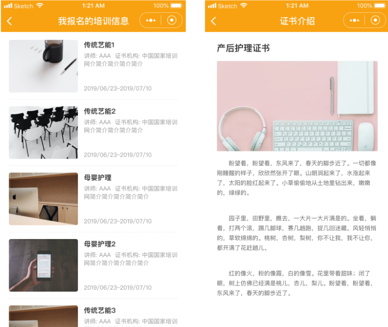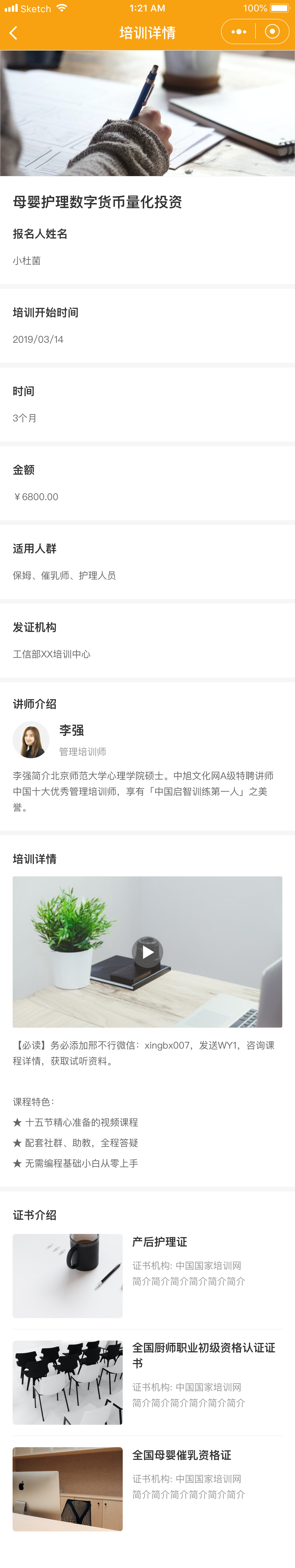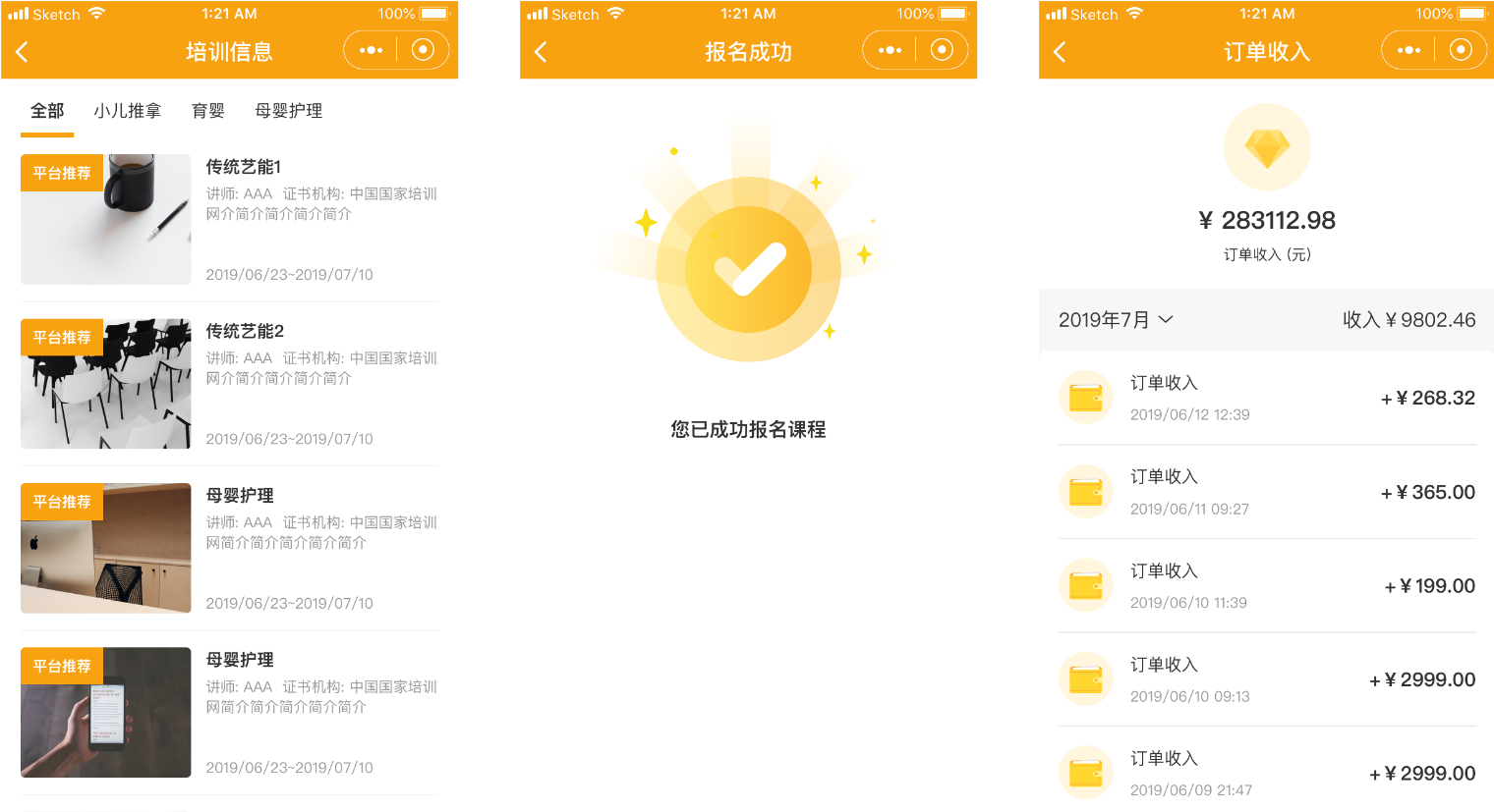 4、阿姨端-我的訂單收入、培訓(xùn)信息展示: