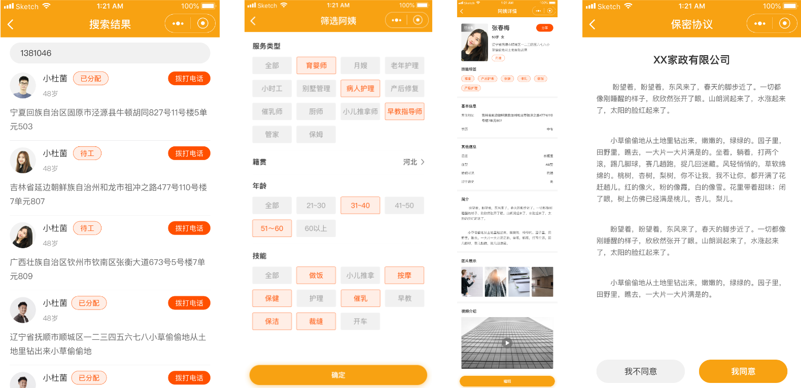 2、企業(yè)端公司資料顯示、阿姨管理UI展示: