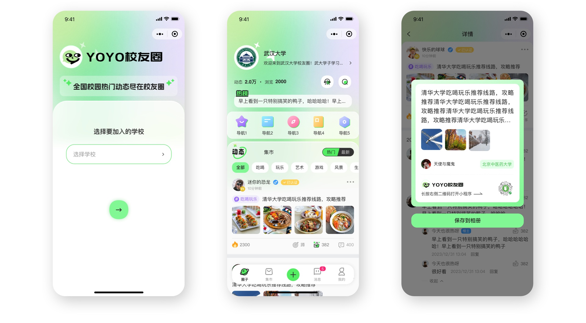 一、YOYO校友圈加入學(xué)校,查看動(dòng)態(tài)和動(dòng)態(tài)詳情