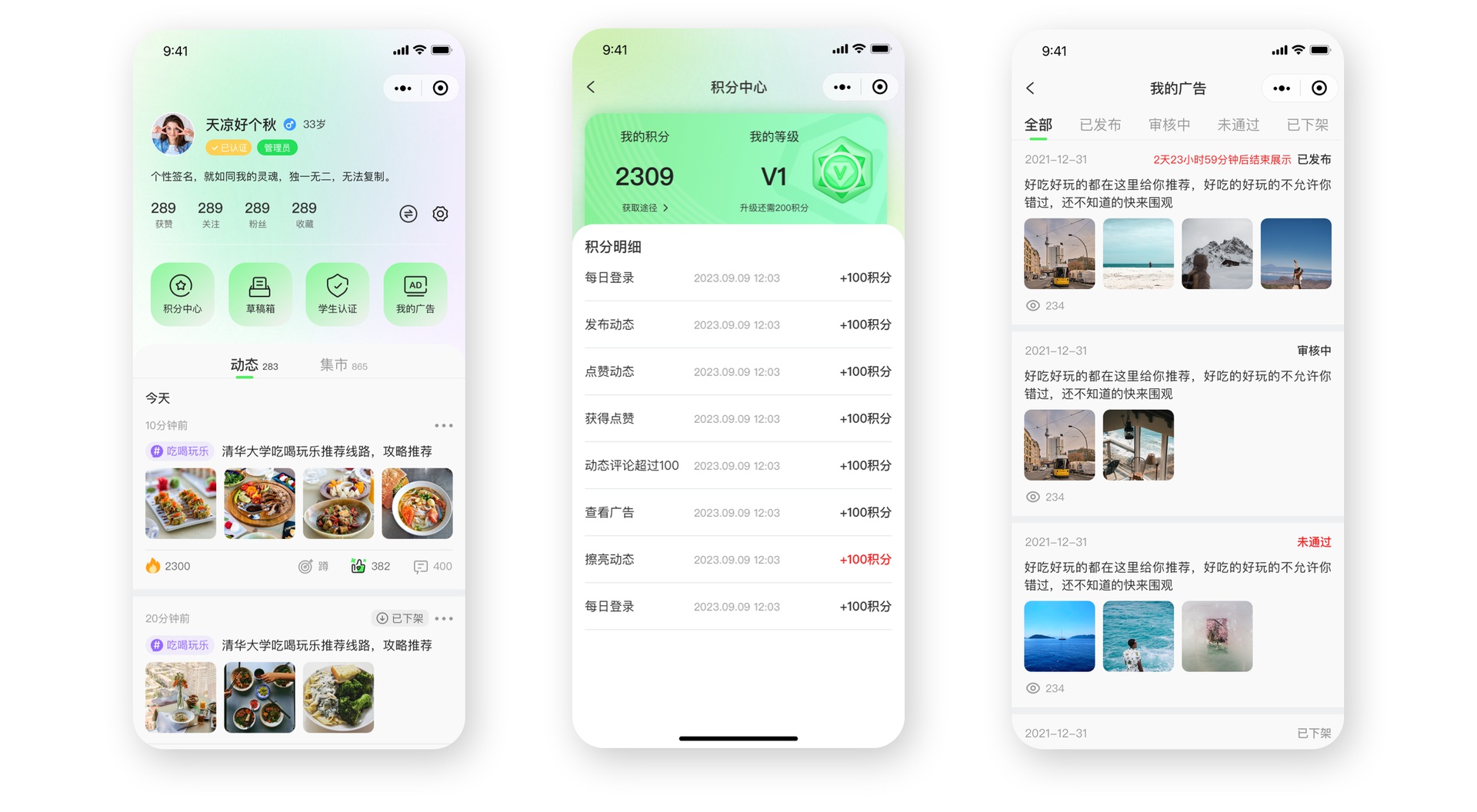 積分模塊點(diǎn)擊,可以看到個(gè)人的積分和等級,以及每日登錄、發(fā)布動(dòng)態(tài)、點(diǎn)贊、獲得點(diǎn)贊、擦亮動(dòng)態(tài)、查看廣告、每日登錄等。