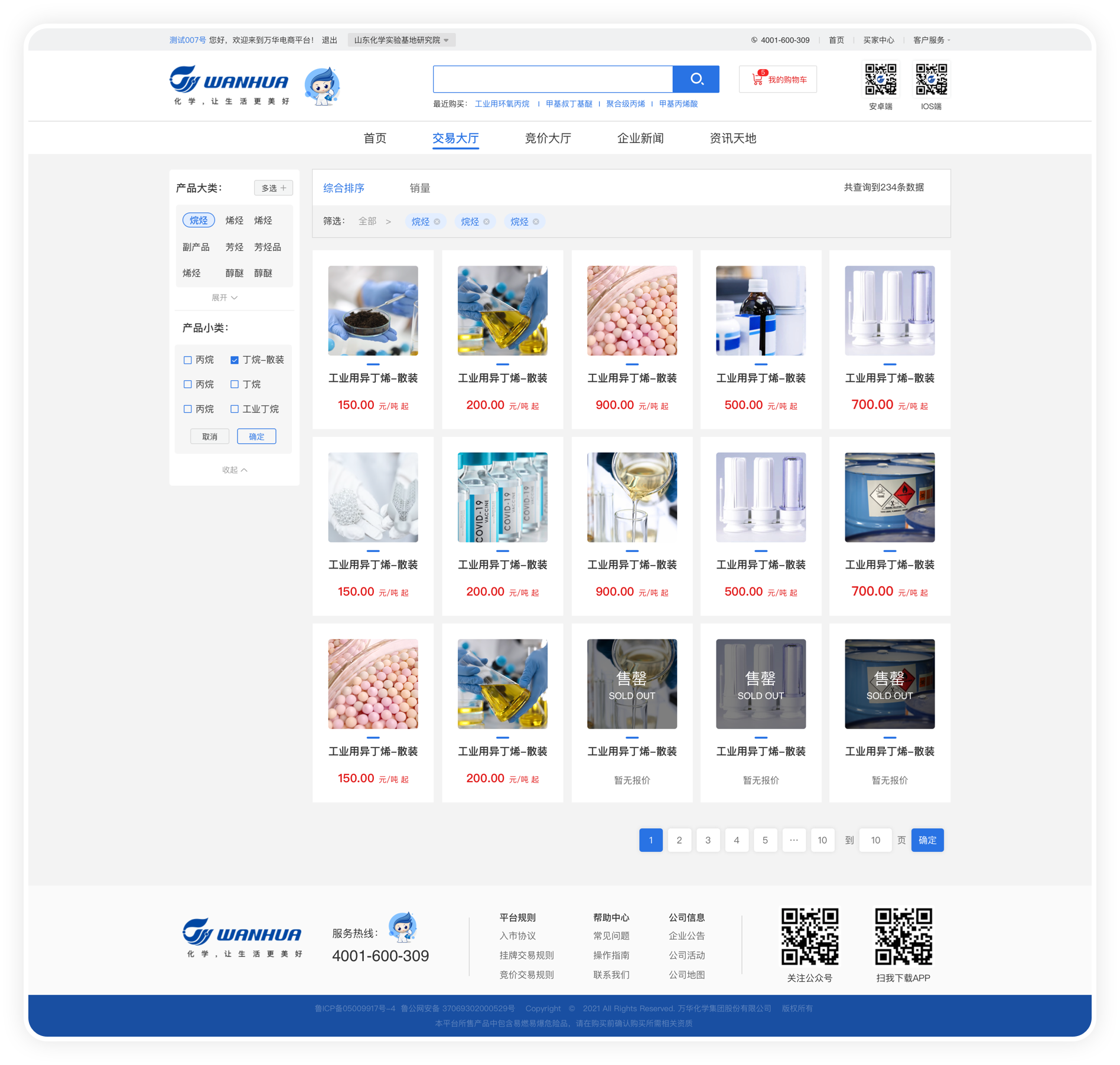 萬華化學電商PC用戶端的主要功能: