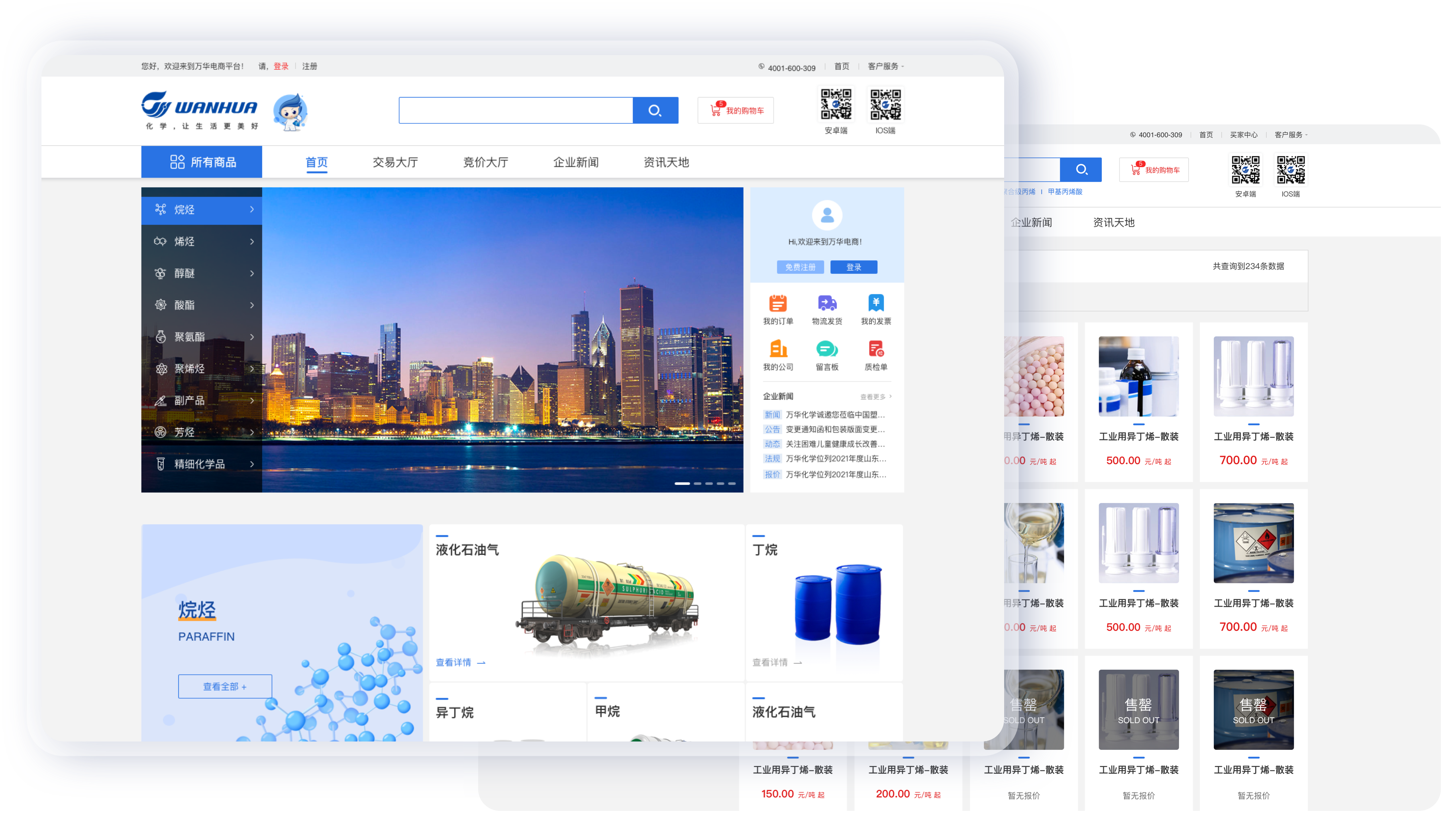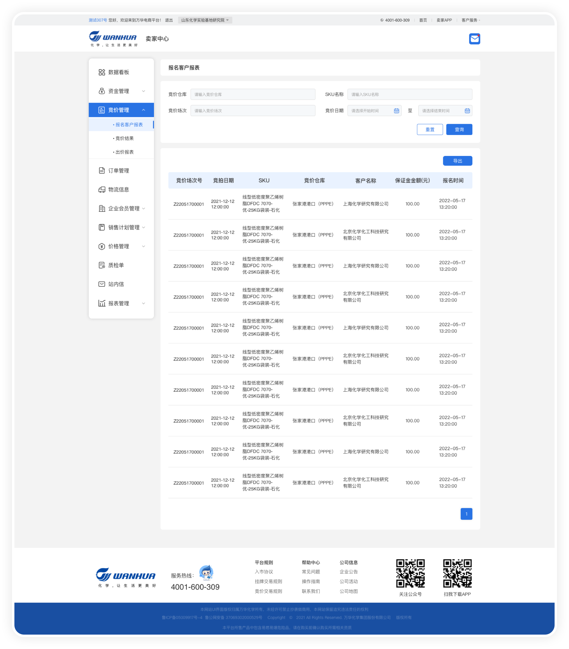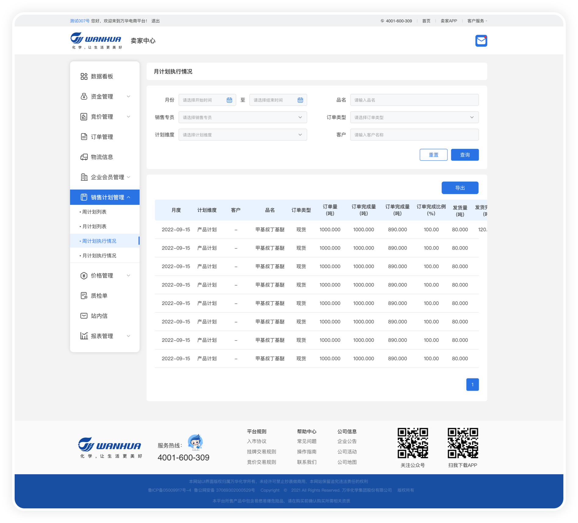 萬華化學電商PC管理端的主要功能: